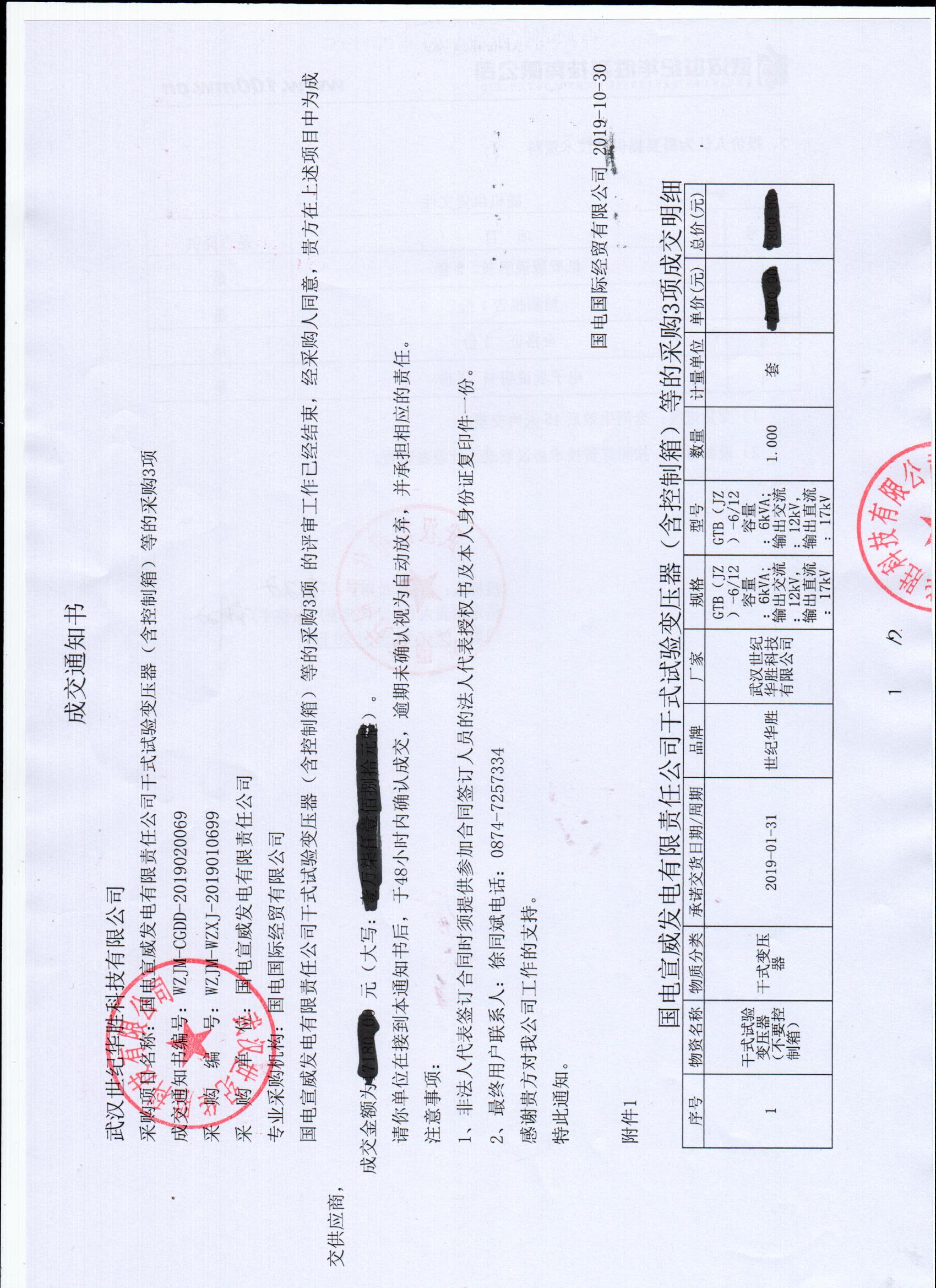 國(guó)電宣威發(fā)電有限責(zé)任公司干式試驗(yàn)變壓器(含控制箱)等的采購(gòu)3項(xiàng)