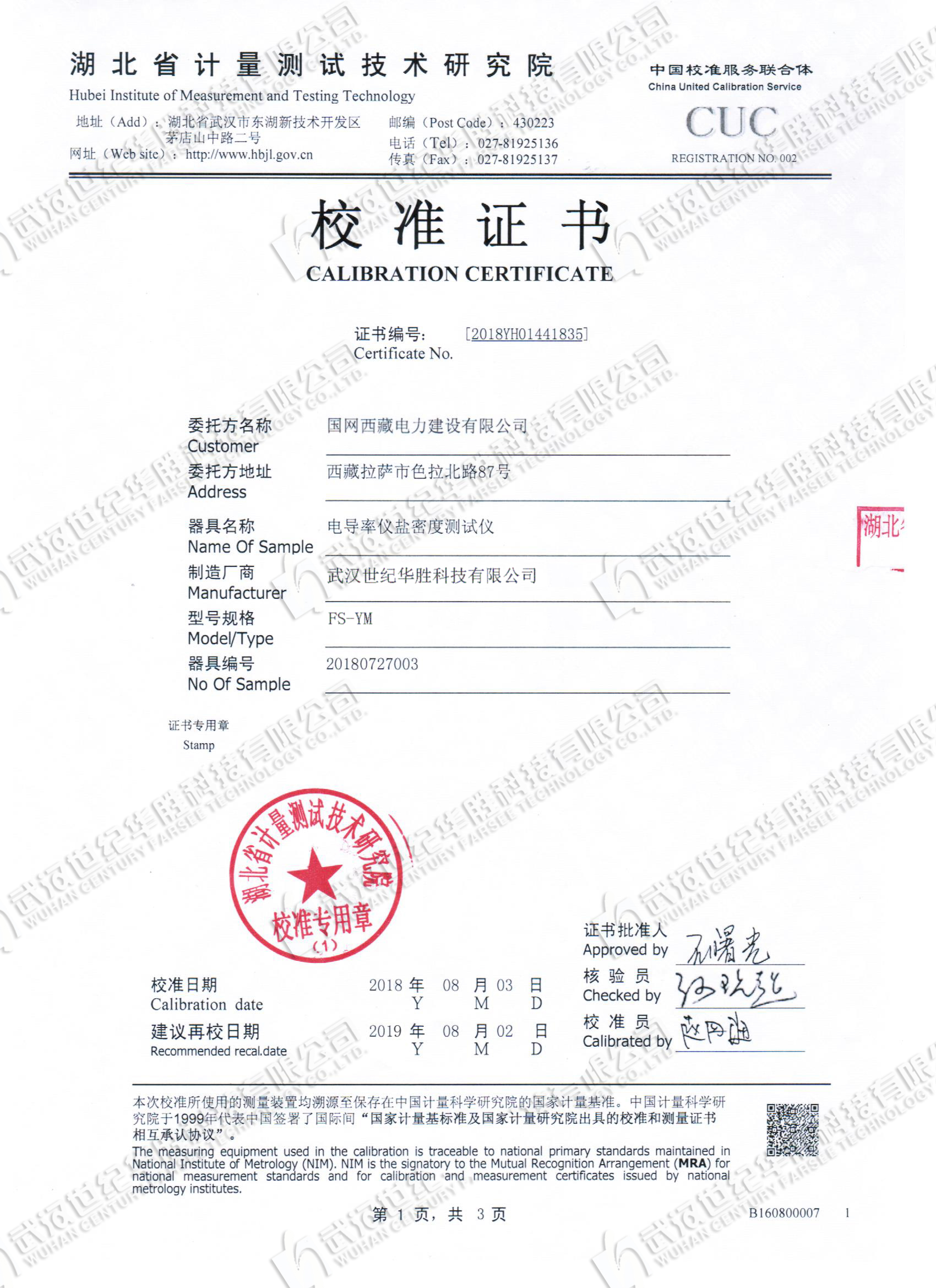 ? ? ? 2.?設備3年免費檢定或校準。