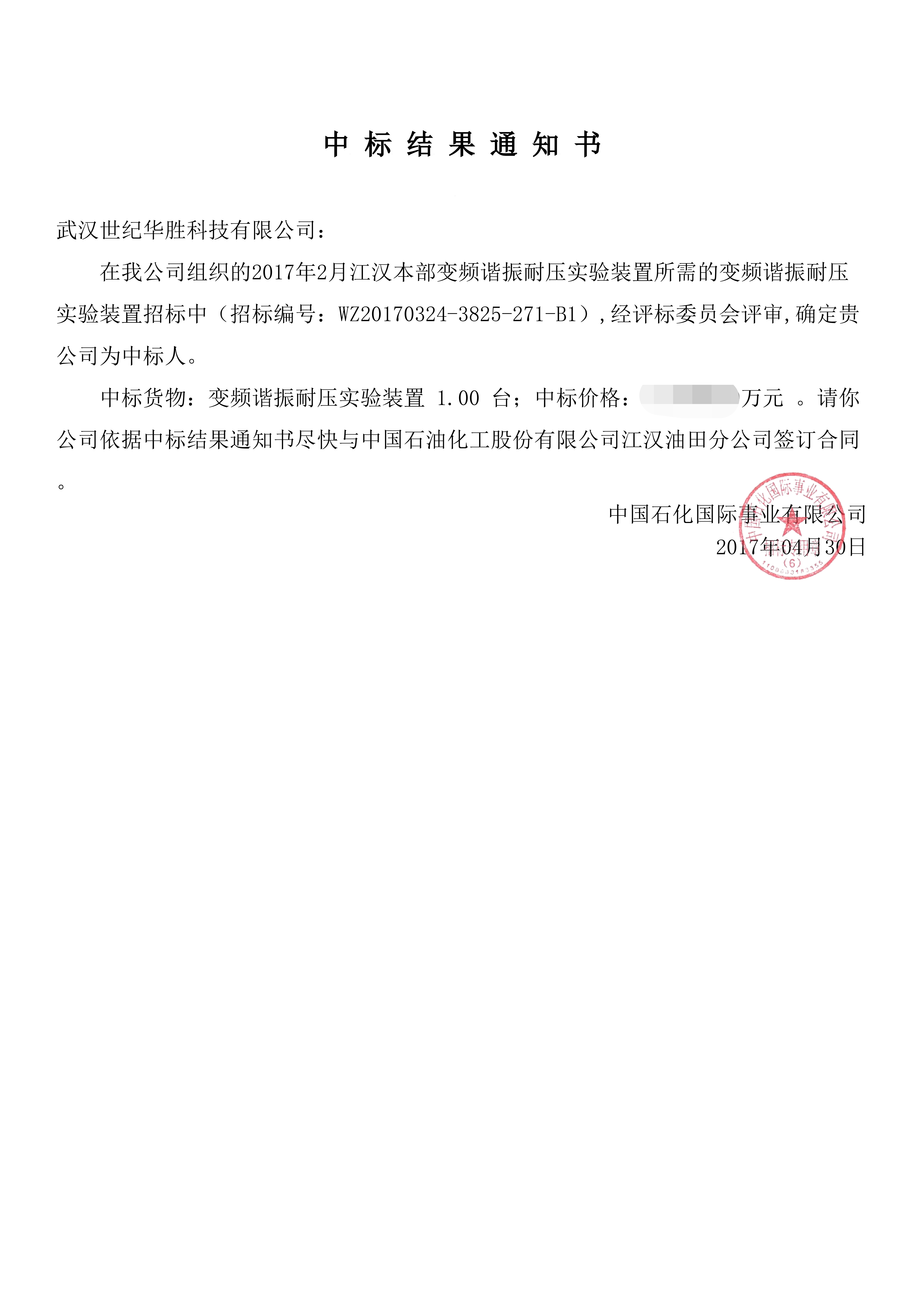 中國石油化工股份有限公司江漢油田分公司2017年2月江漢本部變頻諧振耐壓實驗裝置