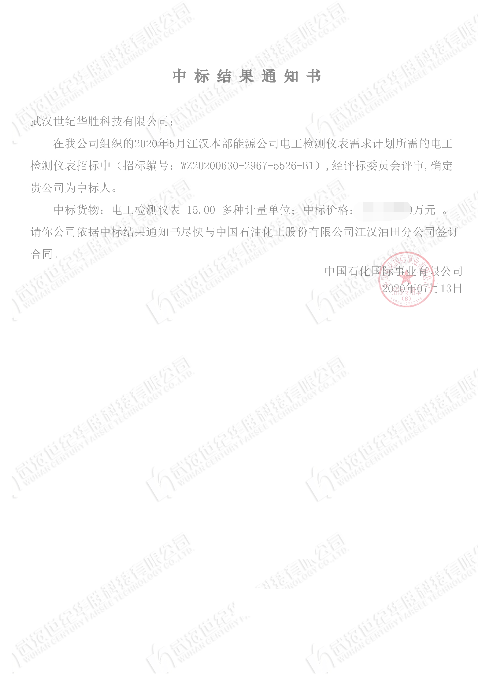 7月中旬,我司在中國石化江漢本部能源公司電工檢測儀表項(xiàng)目中成功中標(biāo)。