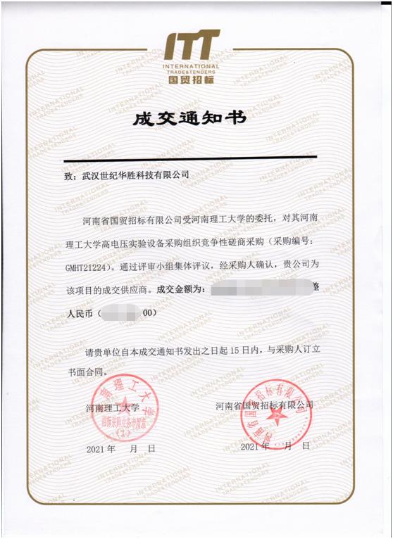 河南理工大學(xué)高電壓試驗(yàn)設(shè)備采購(gòu)項(xiàng)目中標(biāo)