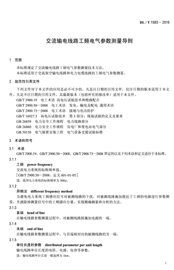 試驗(yàn)標(biāo)準(zhǔn):交流輸電線路工頻電氣參數(shù)測(cè)量導(dǎo)則
